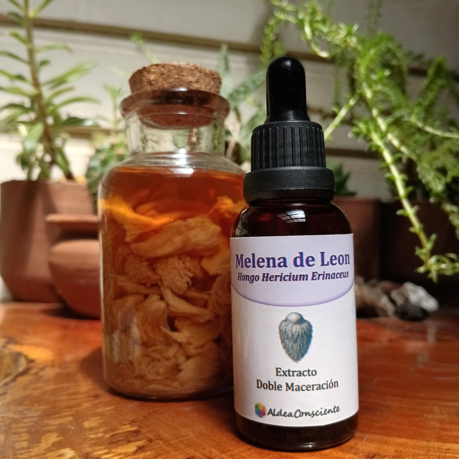 Extracto doble significa que se realiza la extracción del cuerpo fructífero del hongo primero en alcohol y luego en agua, lo que permite la absorción de compuestos como hericenonas y erinacinas, y otros como los betaglucanos; aprovechando al máximo sus beneficios.